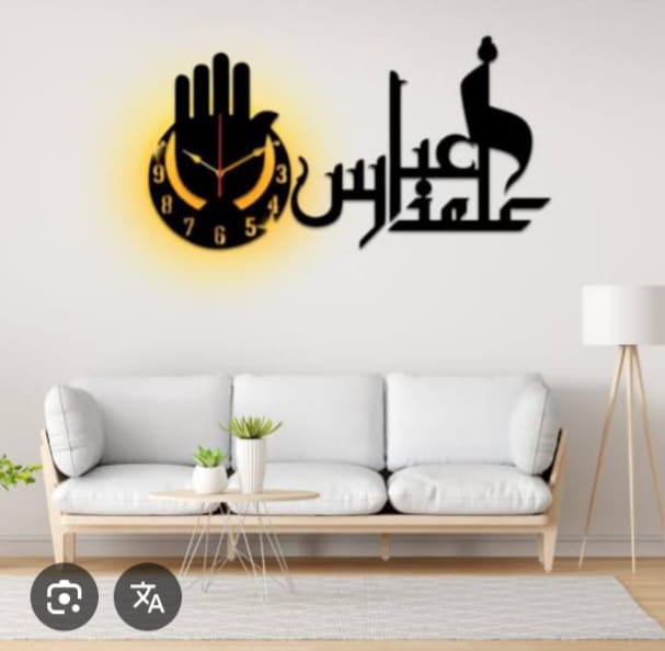 alamdar abbass panjah wooden wall clock with light
