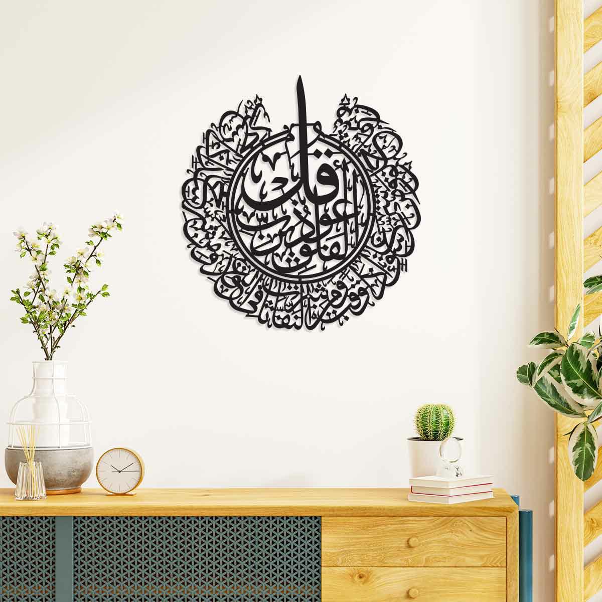 Islamic Calligraphy: Embellished with beautiful Arabic inscriptions such as Allah, Muhammad ﷺ, or Ayat-ul-Kursi.
