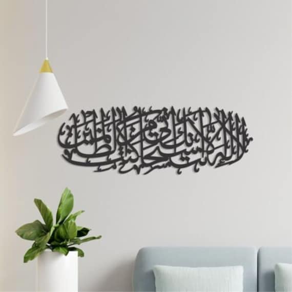Islamic Calligraphy: Embellished with beautiful Arabic inscriptions such as Allah, Muhammad ﷺ, or Ayat-ul-Kursi.
