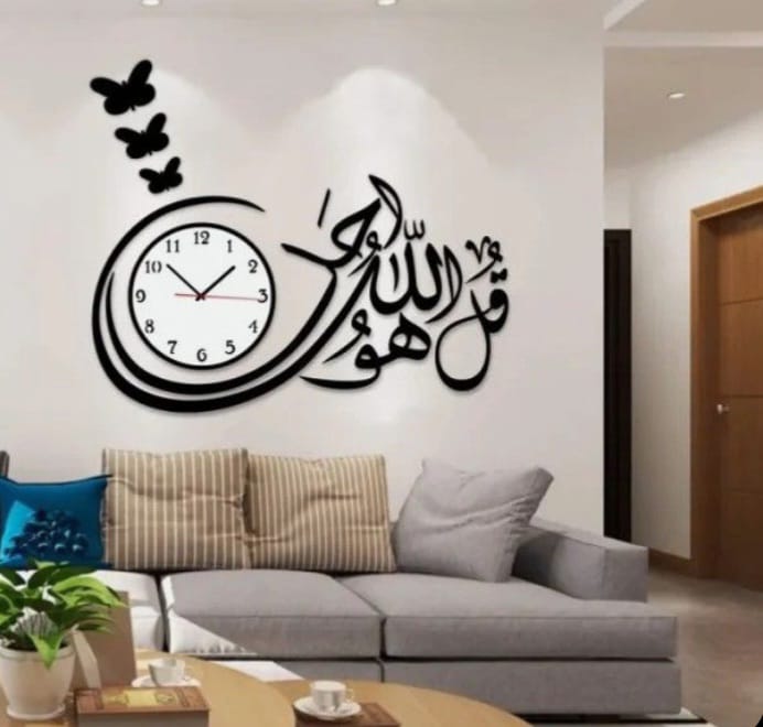 kul hu allah ho ahad wooden wall clock with light
