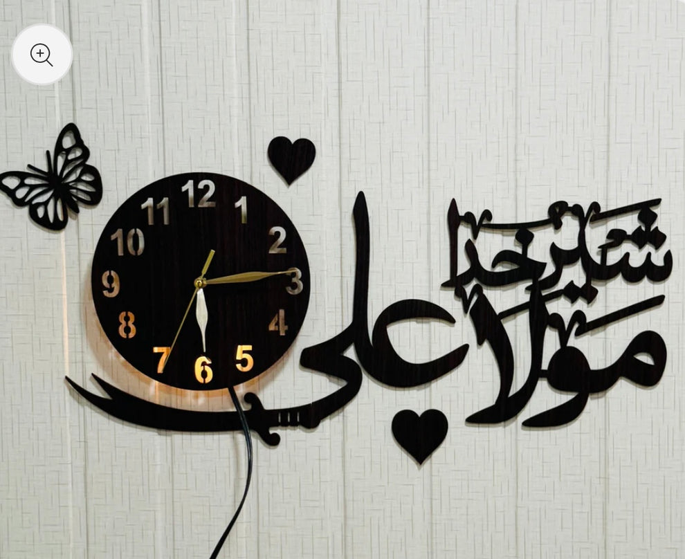 Enhance the beauty and serenity of your space with this exquisitely crafted Islamic Wooden Wall Clock. Designed to reflect both faith and style, this wall clock brings a peaceful ambiance to your home, office, or prayer area.